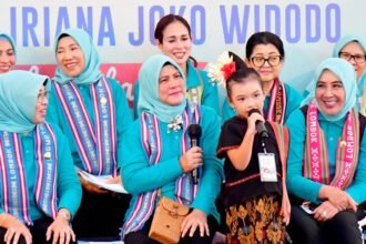 Ibu Iriana Joko Widodo bersama sejumlah anggota Organisasi Aksi Solidaritas Kabinet Indonesia…
