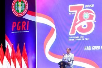 Joko Widodo menghadiri peringatan Hari Ulang Tahun (HUT) ke-78 Persatuan Guru Republik…