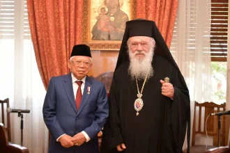 Wakil Presiden Ma’ruf Amin Ma’ruf Amin dan Uskup Agung Athena Ieronymos II Sepakat Selesaikan Konflik di Gaza Dengan Damai