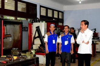 Presiden Joko Widodo dalam keterangannya di hadapan awak media usai meninjau SMKN…