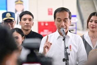 Presiden Jokowi menyampaikan keterangan di hadapan awak media di Stasiun LRT Dukuh…