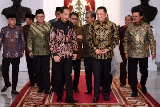 Presiden Joko Widodo menerima pimpinan Majelis Permusyawaratan Rakyat (MPR) di Istana Merdeka,…
