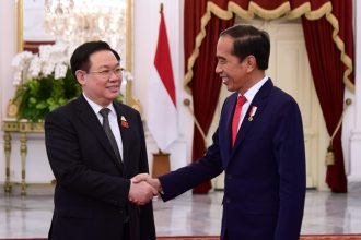 Presiden Joko Widodo menerima kunjungan kehormatan Ketua Parlemen Vietnam, Vuong Dinh Hue,…