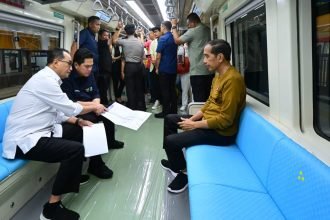 Presiden Joko Widodo menjajal Lintas Rel Terpadu (LRT) Jabodebek (Jakarta-Bogor-Depok-Bekasi) dari Stasiun…