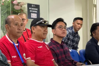 Wakil Presiden (Wapres) Gibran Rakabuming menyaksikan langsung pertandingan Timnas Indonesia U-20 melawan…