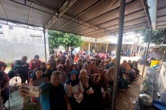 Puluhan Ibu-ibu asal Perumahan Griya Loka menyatakan bakal all out atau berjuang…